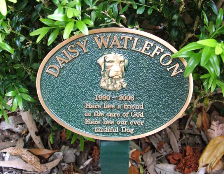 We offer many different bronze options as well. Our bronze is 87-88% copper. Due to this, it will not fade or rust or weather like cheap alternatives. Secondly, we offer plaques that can have cast images of your pet or a porcelain image inset, hence creating an eternal remembrance memorial.