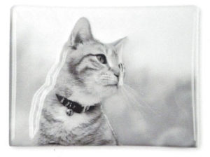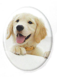 We offer many different shapes and sizes of porcelain pictures. Memorialize your pet in either color or black and white. In addition, these have a lifetime guarantee against fading or damage.